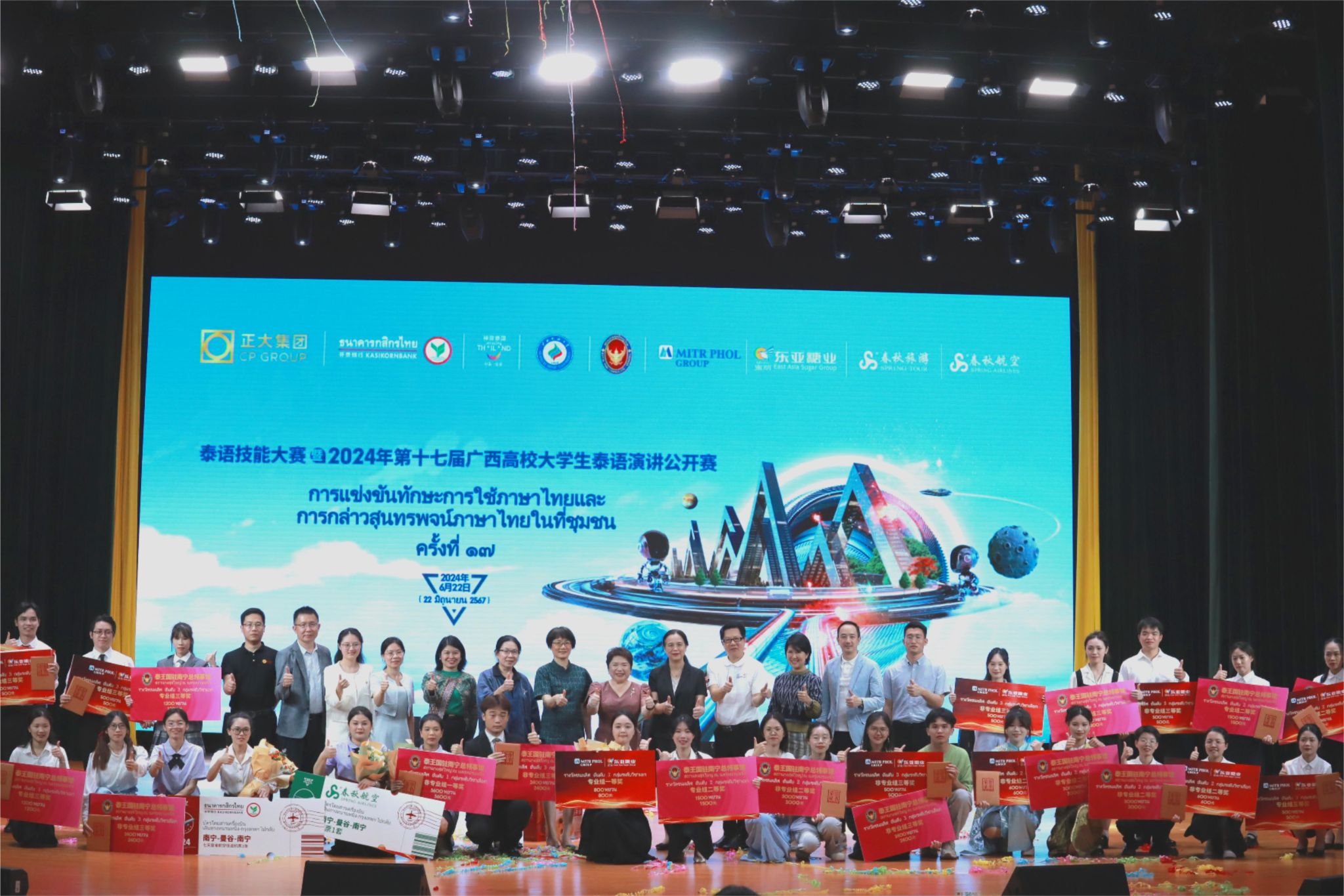 2024年6月22日,由泰王国驻南宁总领事馆携手广西民族大学联合主办的“泰语技能大赛暨第十七届广西高校学生泰语演讲比赛公开赛”在广西民族大学思源湖校区大学生活动中心大礼堂举行。广西民族大学党委副书记、纪委书记韦雪芳出席开幕式和颁奖仪式。