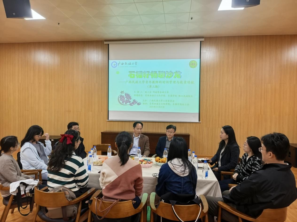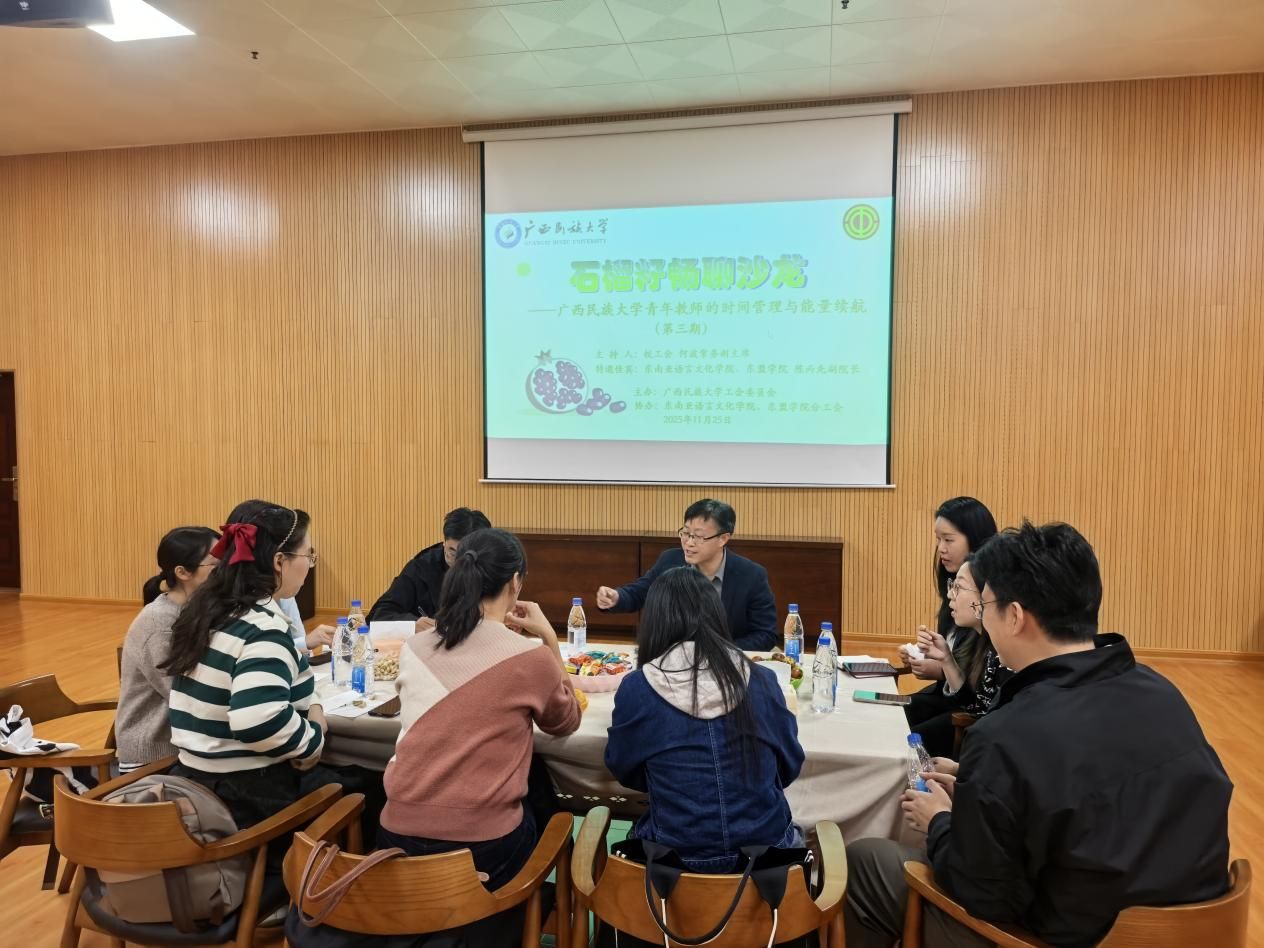 11月25日下午,由校工会主办,必威西汉姆联、东盟学院分工会协办的第三期“石榴籽畅聊沙龙”在八坡教职工活动中心顺利举行。本期沙龙以“青年教师的时间管理与能量续航”为主题,由校工会常务副主席何波主持,特邀必威西汉姆联、东盟学院副院长陈丙先担任分享嘉宾,学院十余名青年教师代表参与交流。