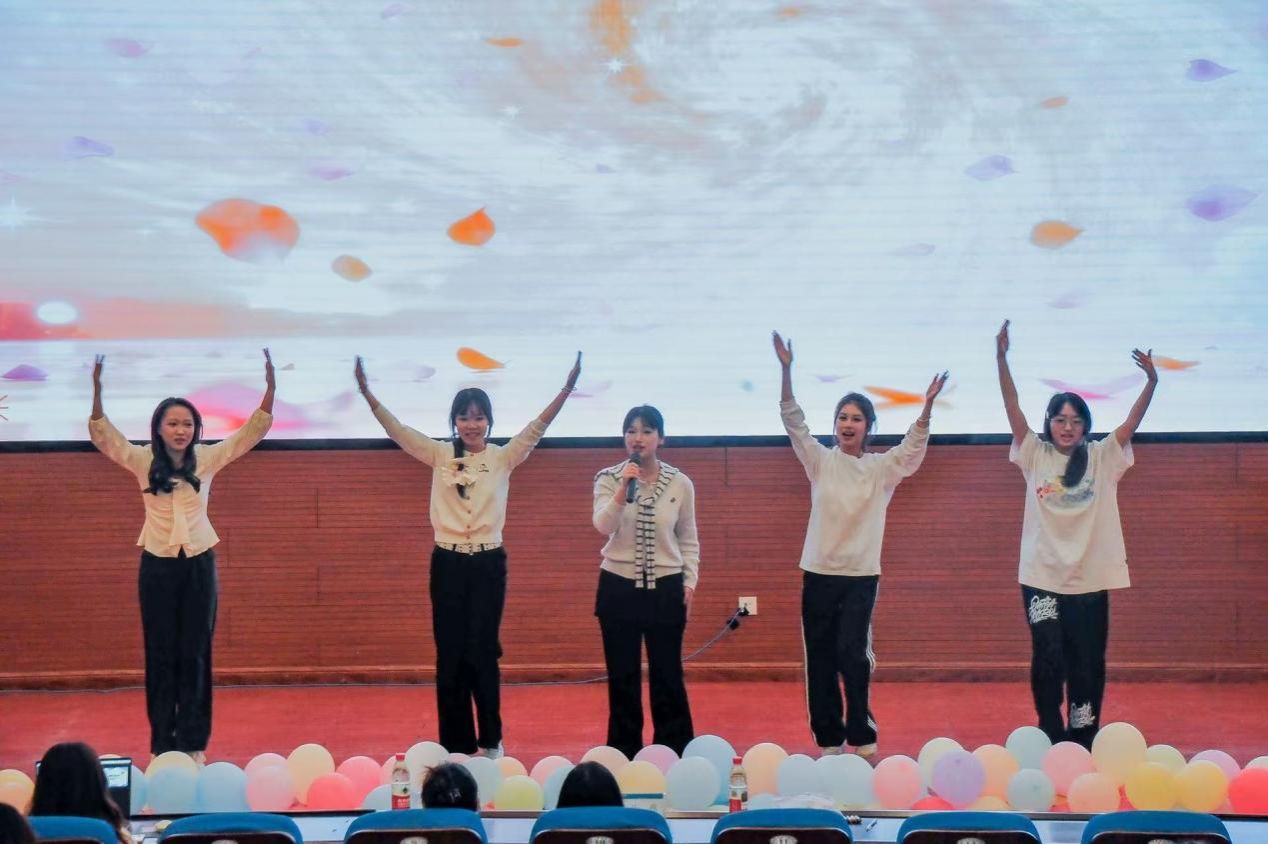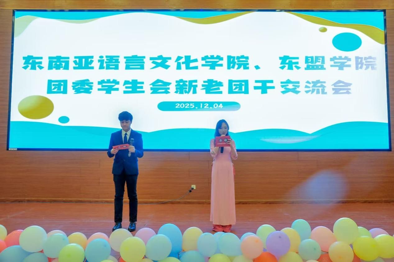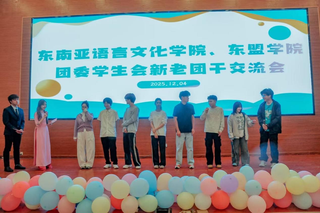 12月4日晚7点半,我院在明德楼101报告厅成功举行了第九期学生骨干培训结业典礼暨团学新老团干交流会。此次活动旨在进一步加强学院组织建设,促进内部融合,学院党委副书记蓝巧燕及朱奕璇老师出席,全体团学组织、团委学生会骨干、2025级团委学生会理事共同参与交流会上,各部门精心准备,呈现了丰富多彩的节目。