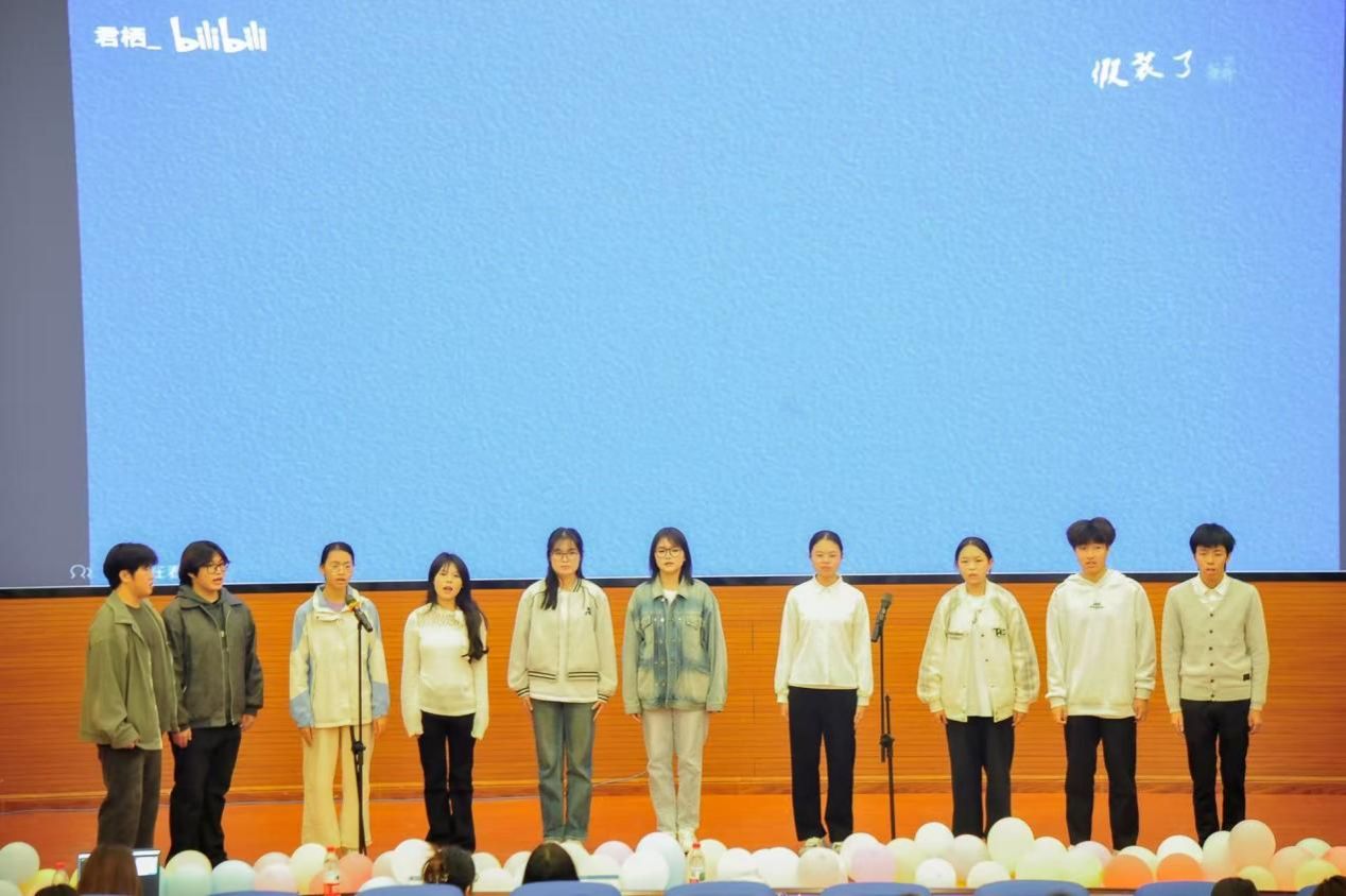 秘书处以一曲《晴天》带领大家重温夏日温暖午后;体育部大合唱《再次与你同行》传递出希望与力量;学习部诗朗诵《青春中国》展现了新时代中国青年的奋斗精神;社会实践部歌舞表演《我好想回来啊》演绎了成长中的蜕变与坚持;团委办公室的古筝演奏与合唱《永远的紫荆花》旋律悠扬,令人动容;文艺部钟紫柔的舞蹈串烧青春洋溢,点燃全场热情;同样来自文艺部的一首耳熟能详的《日不落》歌舞表演活力满满、动感十足;组织部歌舞表演《追光者》温情细腻,勾起追梦回忆;传媒部舞蹈《猪猪侠》可爱灵动,仿佛带人回到纯真童年;生活部歌曲大合唱《我怀念的》深情温柔;纪检部创新表演形式,翻唱歌曲《你怎么说》逗笑全场。