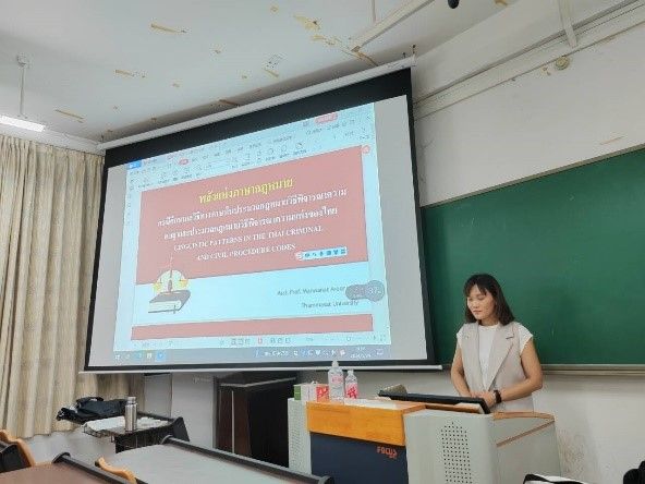2024 年 5 月 29 日,泰国法政大学跨学科研究学院专家婉瓦娜·阿伦叻(WANWANAT AROONROEK)到我院作题为“法律文本中的语言力量——以泰国刑事诉讼法与民事诉讼法为例”的学术讲座。
