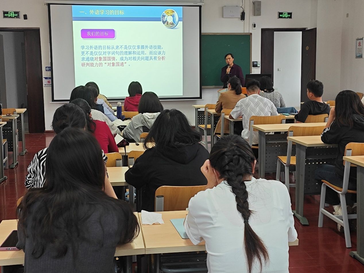 接着,孙衍峰教授深入探讨了外语学习与对象国研究的关系。他指出,对象国知识是外语学习的必修课,只有深入了解对象国的历史、文化、社会、经济等各个方面,才能将外语学习转化为真正的跨文化交流。同时,他鼓励师生们将对象国知识转化为对象国研究,通过学术研究深化对对象国的理解。